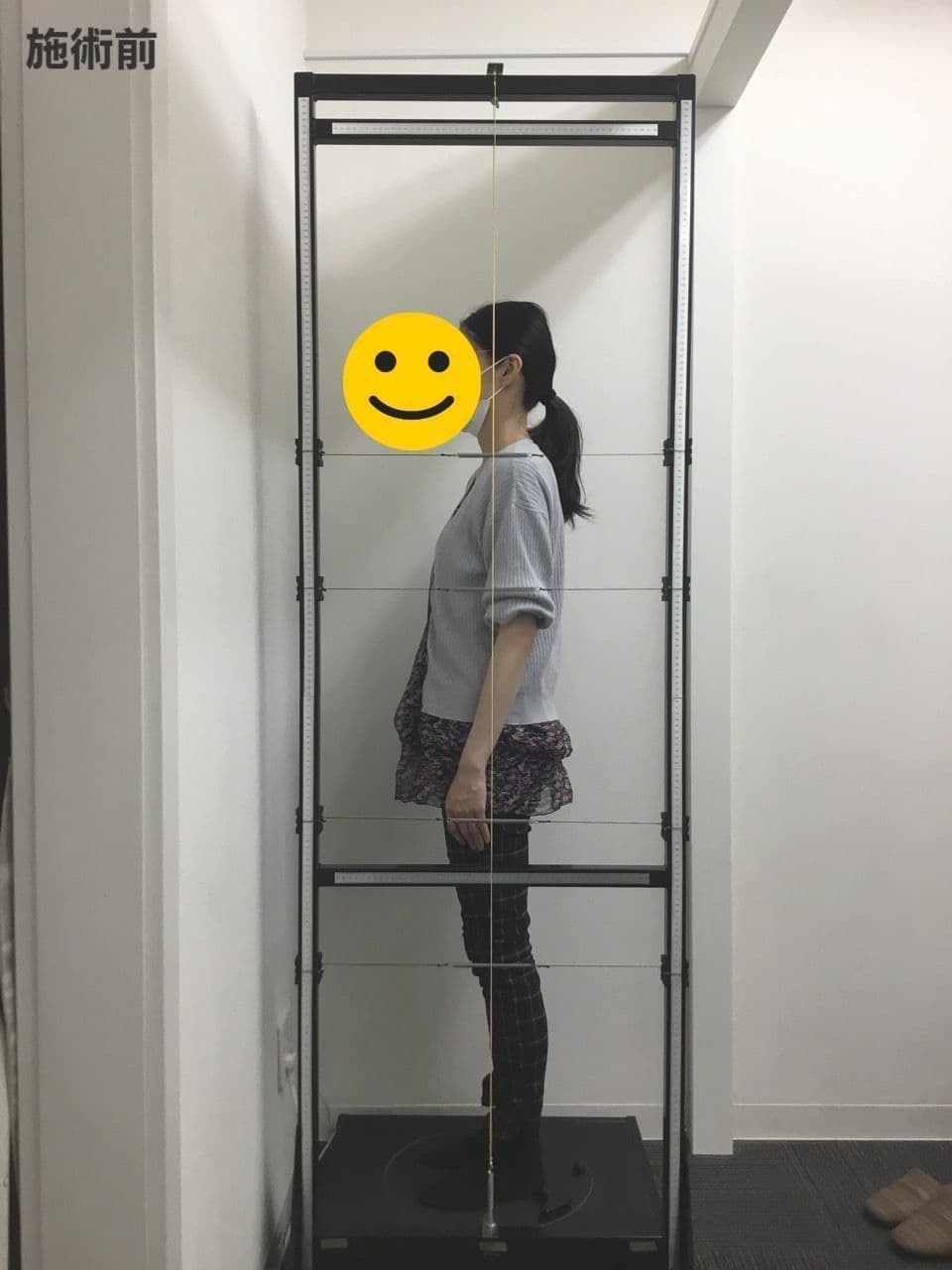 施術前は後ろ重心になっていましたが、施術後に安定した重心となり、姿勢が良くなりました。