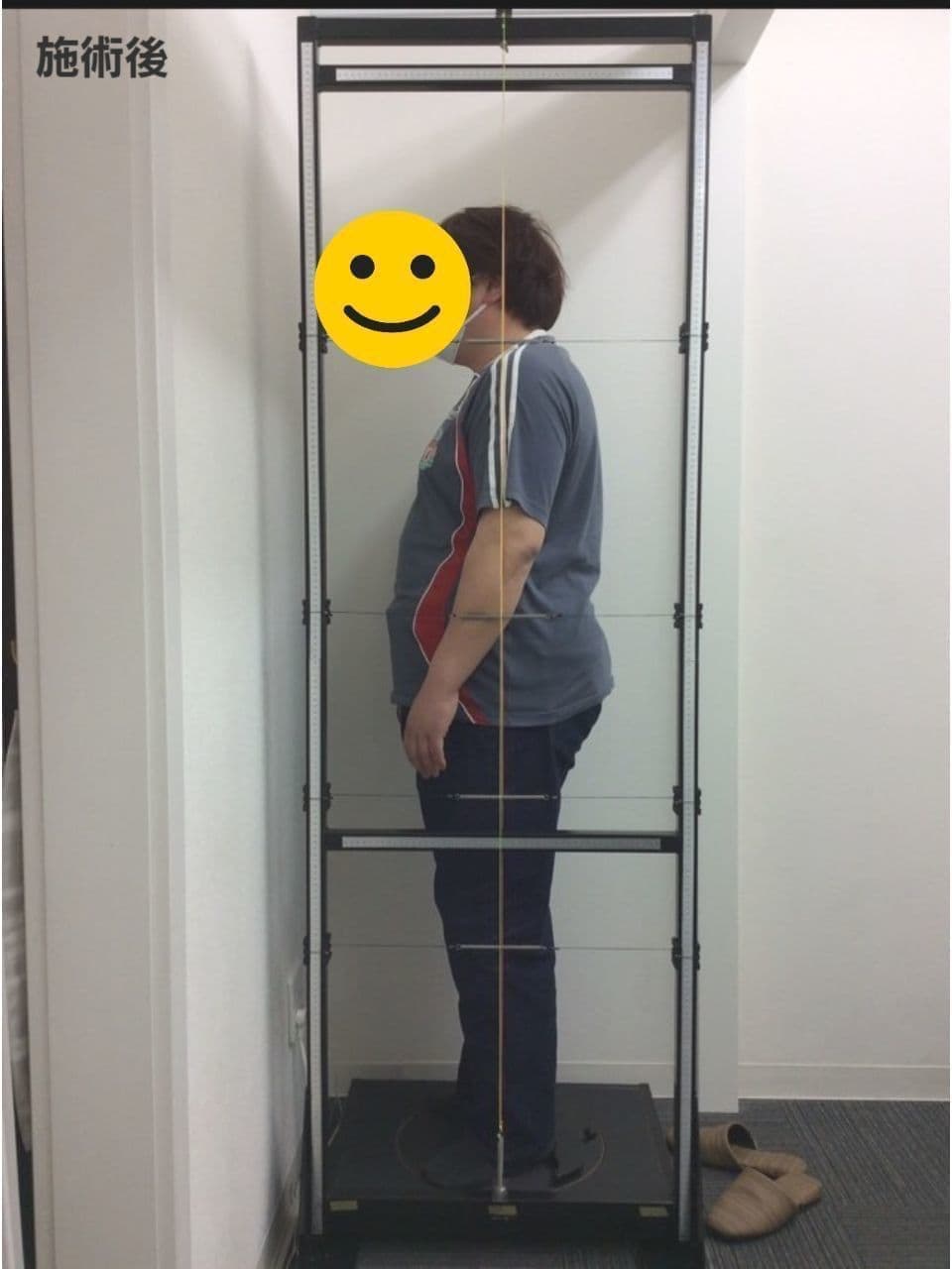 施術前は猫背が強かったですが、施術後に大幅に猫背が改善されました。